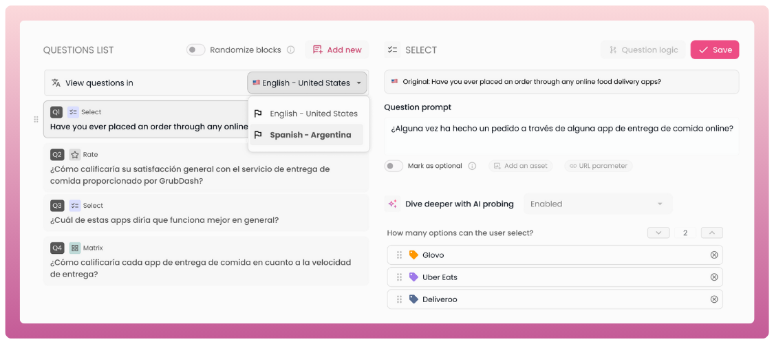 Conducting multilingual research often involves balancing speed with accuracy. While automatic translations allow projects to progress quickly, researchers still need to ensure that each question is correctly phrased for local audiences, cultural nuances, and the study context.